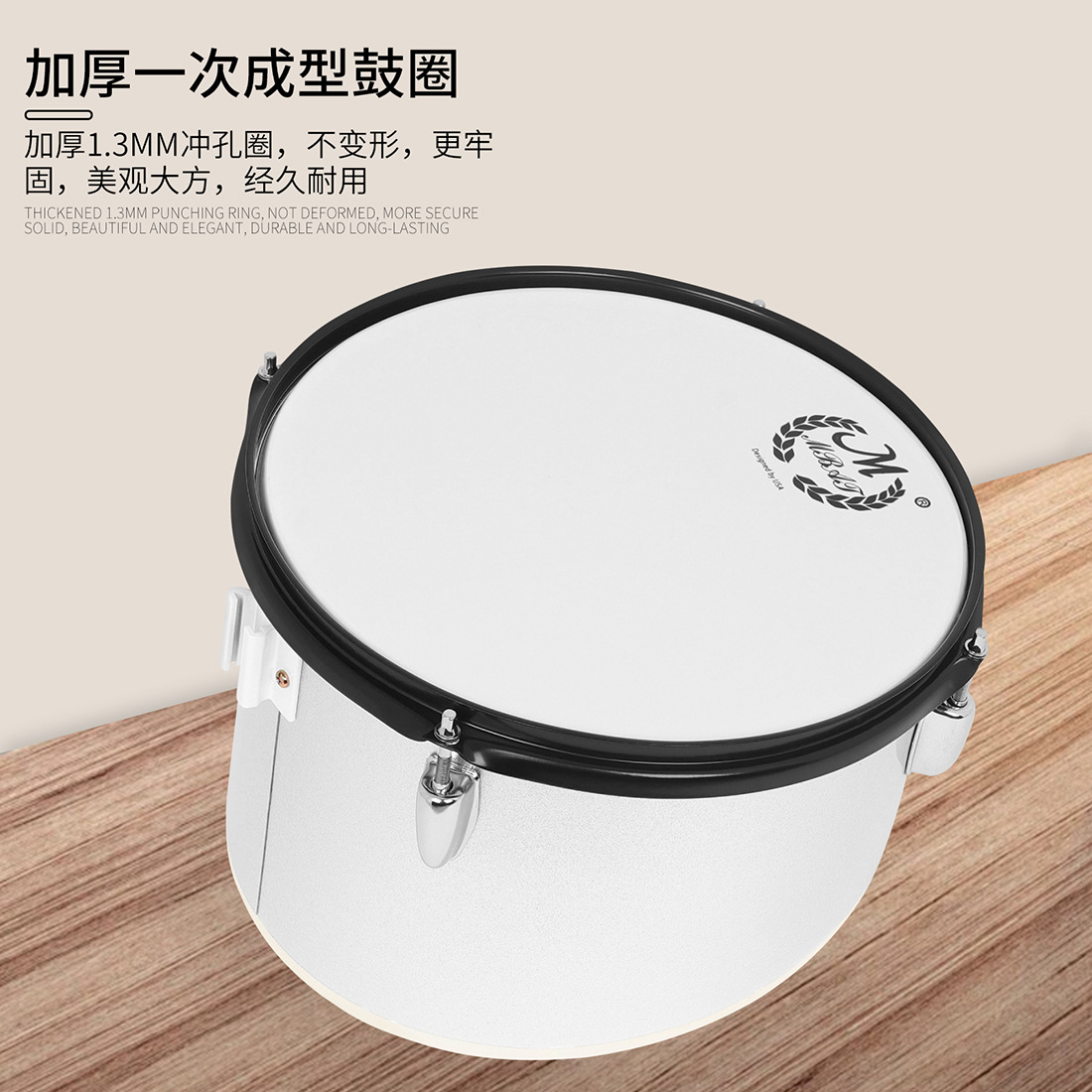 Use selling point: high quality polyester film drum skin, drum skin is blue transparent color, the use of imported genuine aluminum alloy drum skin edge is not easy to fall off, can meet the great demand for durability to strengthen and strengthen the ear, the thickening material is durable, the ear tension is more stable and durable, the surface plating process